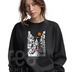 İstanbul Silüet Tasarımlı - Sweatshirt Konfor Siyah