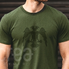 Selçuklu Kartal Tasarımlı Bisiklet Yaka Pamuklu Tişört Haki